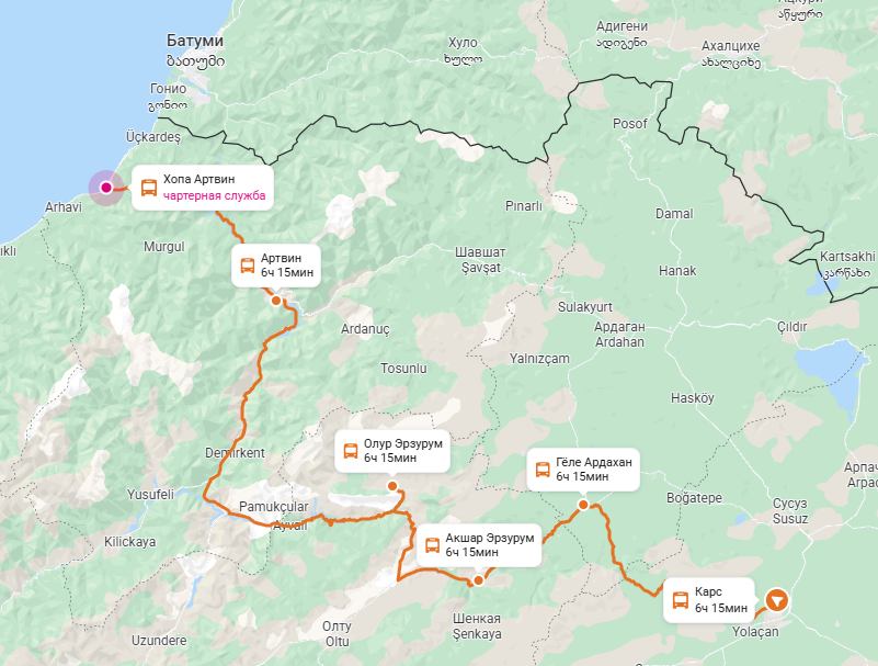 Маршрут автобуса из Карса в Хопу